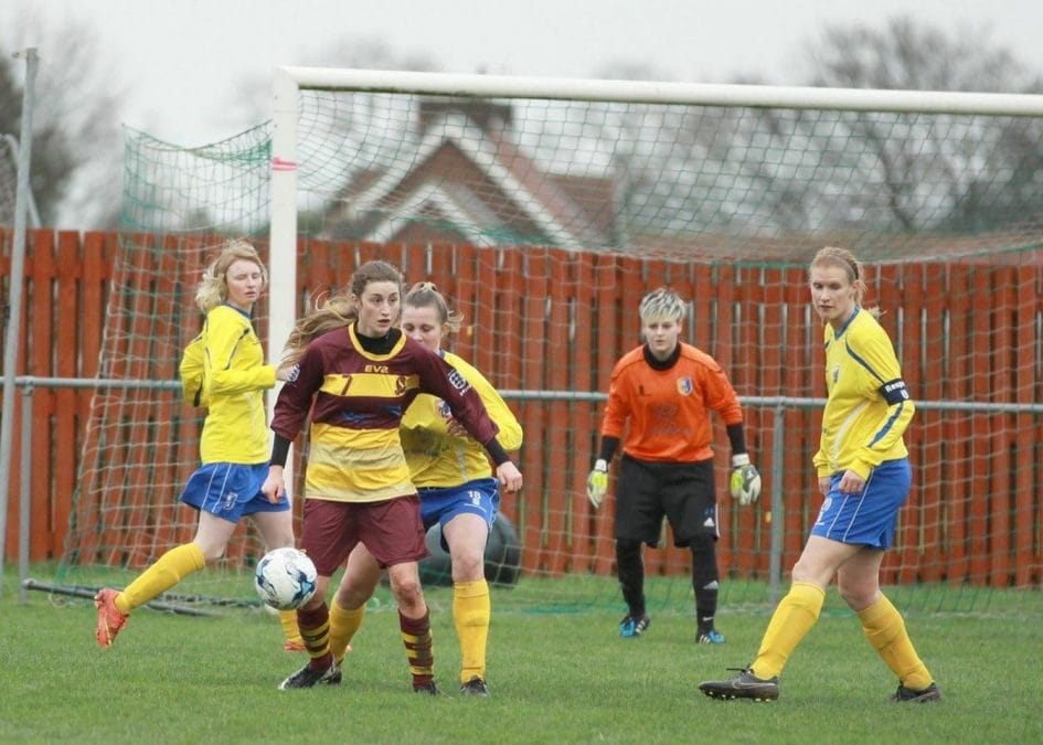 With illness and injuries forcing some late pull outs, the side started with a bare 11 but with the knowledge of holding Mansfield Hosiery Mills a few weeks ago with only 10 players, confidence was still high. A reshuffle at the back with the reliable Chay Davey missing through illness, brought the up and coming Ciara Button into the back four along side Claire Potter, Charley Norman and Tina Potter. A lack of playing together along with possible nerves may have been ther reason for communication issues which allowed Mansfield to take a 4-0 lead at the break. However once the 4th was scored, Arnold relaxed and began to play the style of football that has kept their season alive so far.