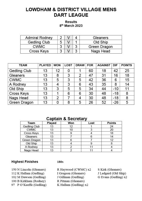 Remaining unbeaten and having lost only 18 legs all season the Gedling Club, who have already won the league are not taking their foot off the pedal and look determined to go through the season unbeaten.