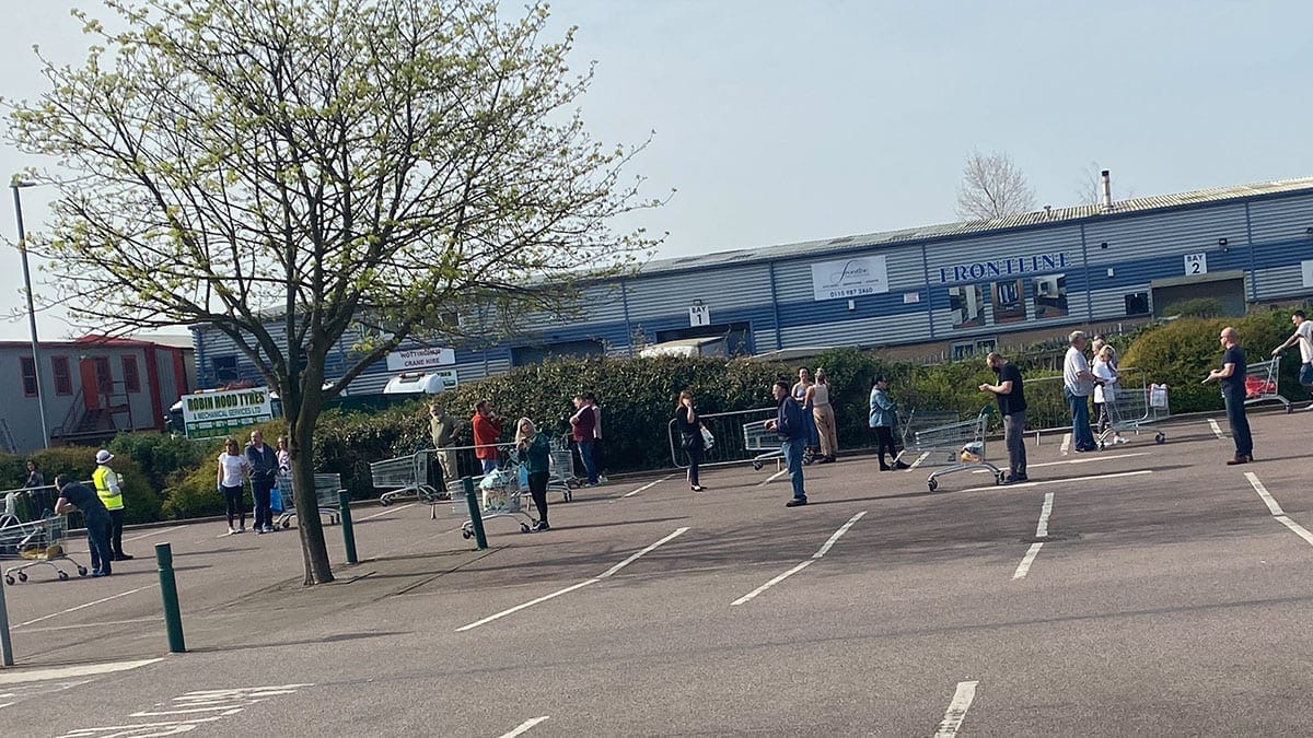 Queues were still lengthly this later in the morning outside Tesco in Carlton, Asda at Arnold, Wilkinsons in Carlton Square, Morrisons and B&M Bargains at Victoria Retail Park and Co-op in Netherfield.
