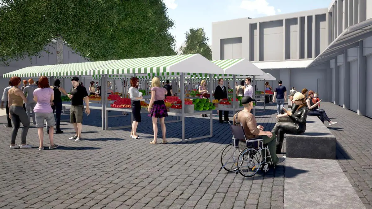 People are being urged to have their say on the plans which include a new two-storey building with permanent small business units and a revamped market.