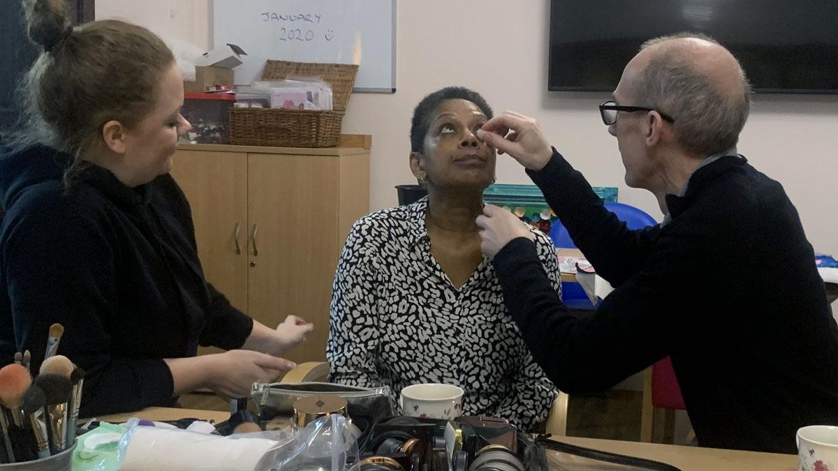 Beverley persuaded husband Dave to come in to Nottinghamshire Hospice for one of the sessions. He mastered basic eye shadow techniques, concealer, powder & blush application as well as eyeliner in the 30-minute tutorial.