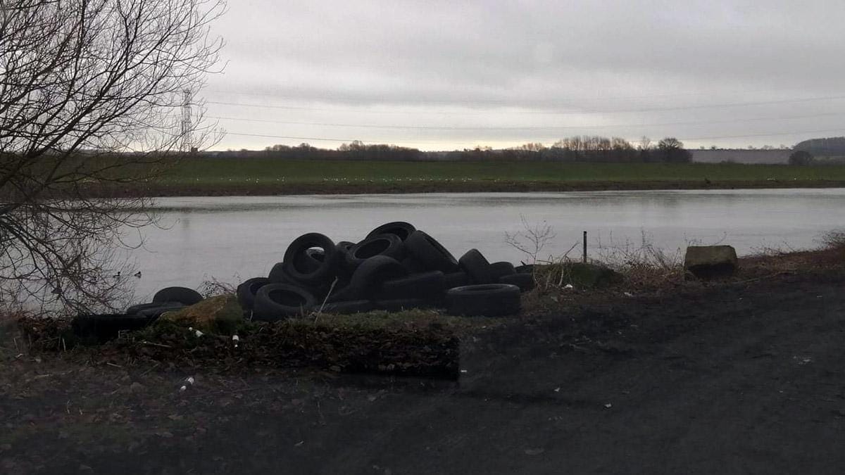 This pile of tyres in Stoke Bardolph will now have to be cleared by Gedling Borough Council after the fly-tipping incident was reported by Trent Valley councillor Michael Adams.