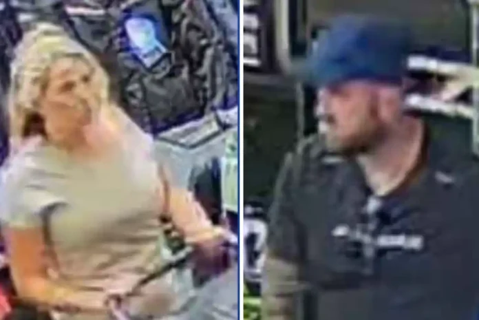 Police investigating the theft of three high-value motorcycle helmets from a store in Daybrook want to speak to the man and woman pictured on CCTV.